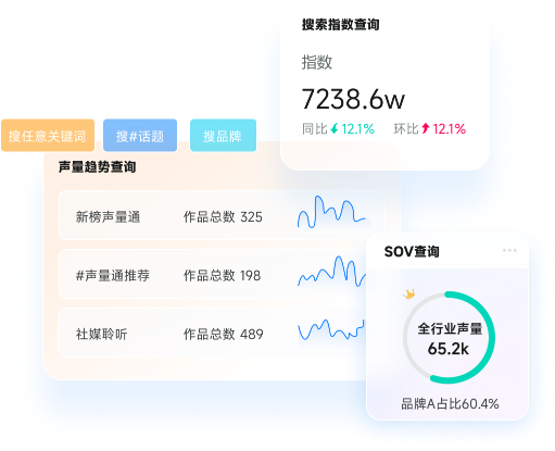 · 传统舆情工具无法查询品牌影响力,新榜声量通能量化品牌声量、SOV、搜索指数等指标;