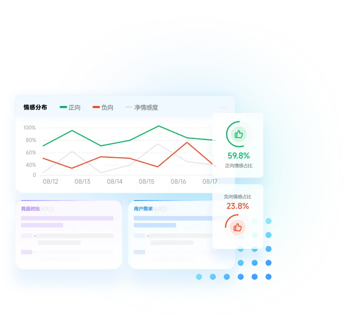 帮助企业挖掘市场需求、识别用户真实反馈,推动产品持续优化升级,实现营销策略制定。