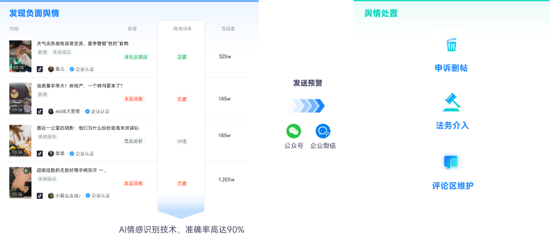 监测品牌负面舆情并及时发送预警至运营者,方便企业迅速应对品牌舆情危机