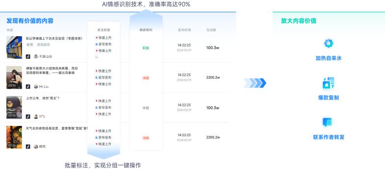 · 传统舆情工具只注重负面舆情,新榜声量通兼顾正负面舆情的监测与分析;