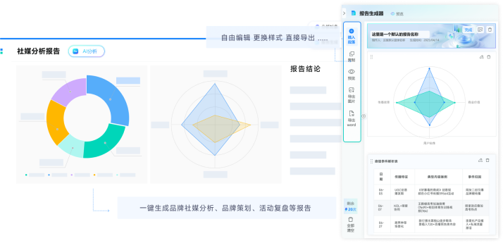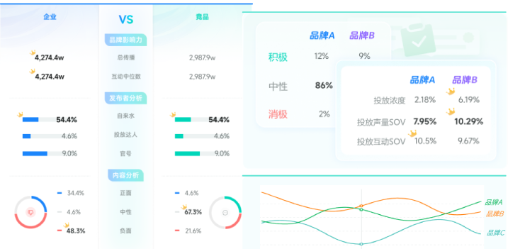 综合评估品牌 / 竞品 / 话题 / 活动影响力水平,进行多维度解析,全面掌握社媒传播核心态势