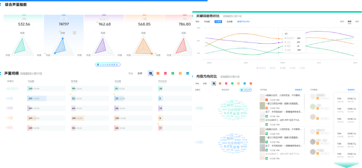 新榜声量通是AI时代下的社媒聆听系统,不仅兼顾舆情功能,还具备强大的分析能力和数据能力,帮助品牌不错过社媒上任何提及品牌的内容,并基于此掌握品牌、竞品、用户、市场情况。