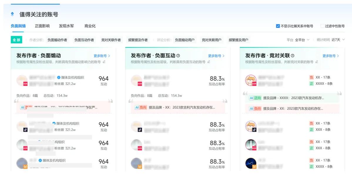 不仅实时监测抖音平台,还全面覆盖小红书、公众号、视频号、B站等主流社媒平台,帮助企业构建全方位的舆情监控网络。