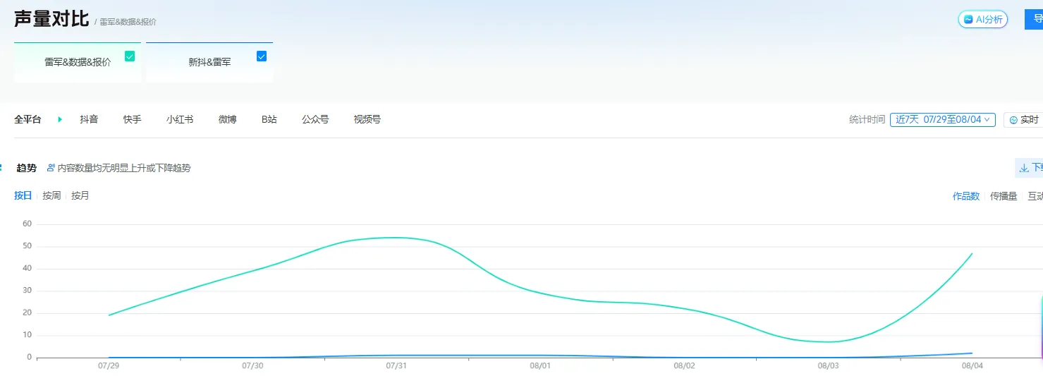 在众多舆情监测工具中,新榜声量通凭借其卓越的多平台覆盖能力和AI深度分析技术,在抖音舆情监测领域具有以下优势:
