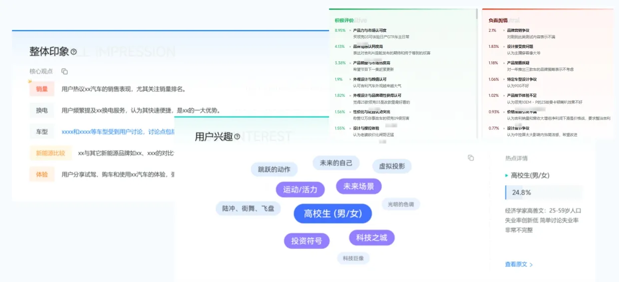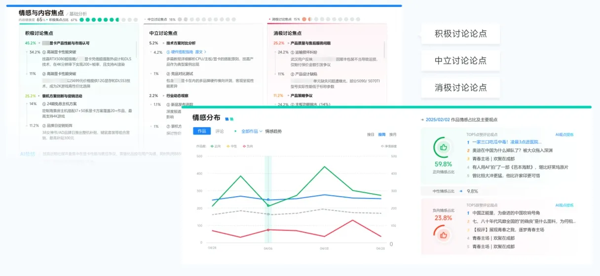 (1)精准情感识别: 自动分析作品及评论区用户情感,能解析“反讽”等复杂语境,精准识别正负向评价,情感识别准确率达90%以上。