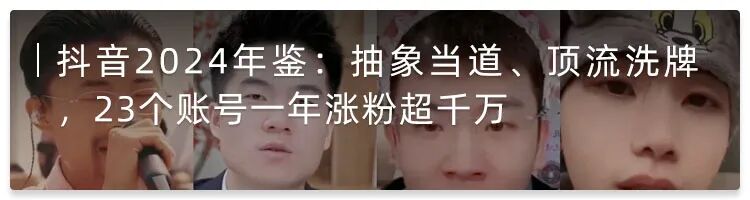 虽然,“听泉赏宝”凭借抽象的鉴宝直播成为2024年抖音涨粉最多的账号,“国防部发布”“黄子韬”“雷军”“与辉同行”等账号紧随其后,一年涨粉数均超过2000万。但“抖音一哥”究竟是谁,已不再重要,顶流难当,恐怕也没人想坐上这一宝座。