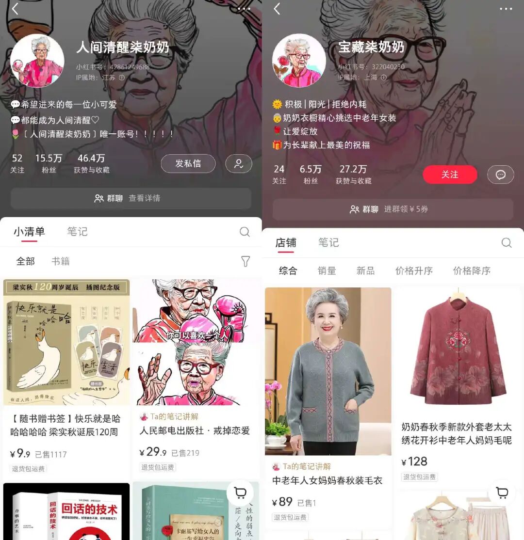 “人间清醒柒奶奶”“宝藏柒奶奶”的变现方式都是卖货,只不过前者卖的是书籍,后者卖的是老年服装。
