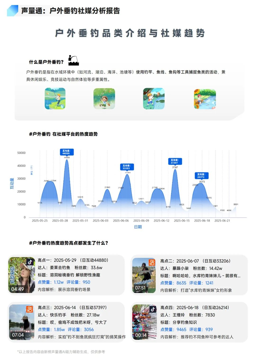 通过这份报告,我们全面剖析了户外垂钓品类在社媒平台上的表现,从热门话题到受众分析,再到品牌营销案例,相信能为相关从业者和爱好者带来不少启发。
