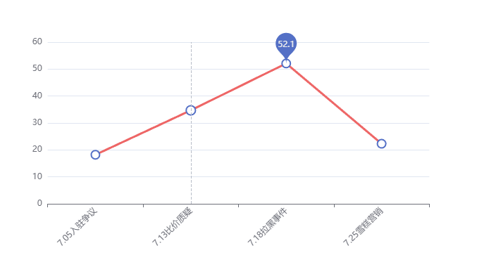 负面舆情在7月18日达到峰值,源自"爱马仕专柜拉黑"事件视频(播放量130万),衍生出三大讨论焦点:①奢侈品服务标准(41%)②消费分级现象(33%)③品牌公关策略(26%)。平台差异明显,微博成主要发酵地,负面声量占比达63%。