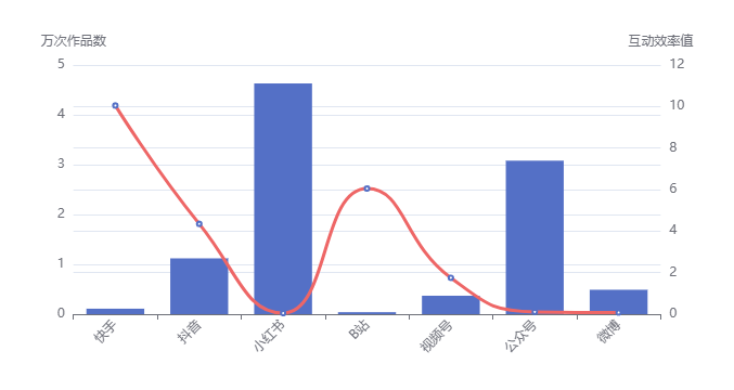 数据显示快手以单作品互动量破千(1004.84次)领跑效率值,但存在"尖峰突刺"特性,TOP1作品贡献总互动量的29.8%。抖音保持稳定产能,其CPE(单互动成本)最低,仅1.2元/互动。
