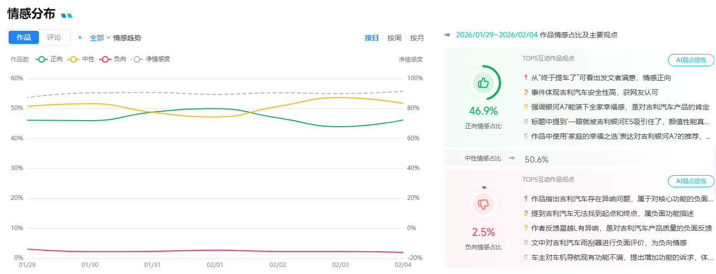 A: 首先要选能覆盖全社媒场景、全内容形态的工具,要能区分真实用户表达和营销内容,过滤无效干扰信息;其次要选AI情感解析能力强的工具,比如新榜声量通搭载的VOICE_AI大模型细粒度情感识别准确率超95%,能识别反讽、隐性不满这类复杂语境,基本不会出现数据和实际感受脱节的情况。