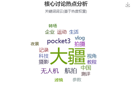 · 品牌生态形成集群效应:大疆、pocket3、无人机等品牌产品词占比达总热度的38%,科技、航拍、摄影等应用场景占比22%