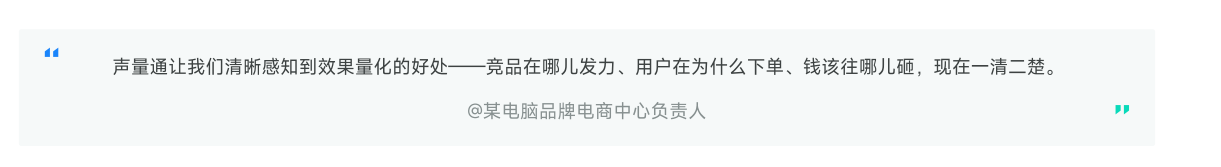 “声量通让我们清晰感知到效果量化的好处——竞品在哪儿发力,用户在为什么下单,钱该往哪儿砸,现在一清二楚。”